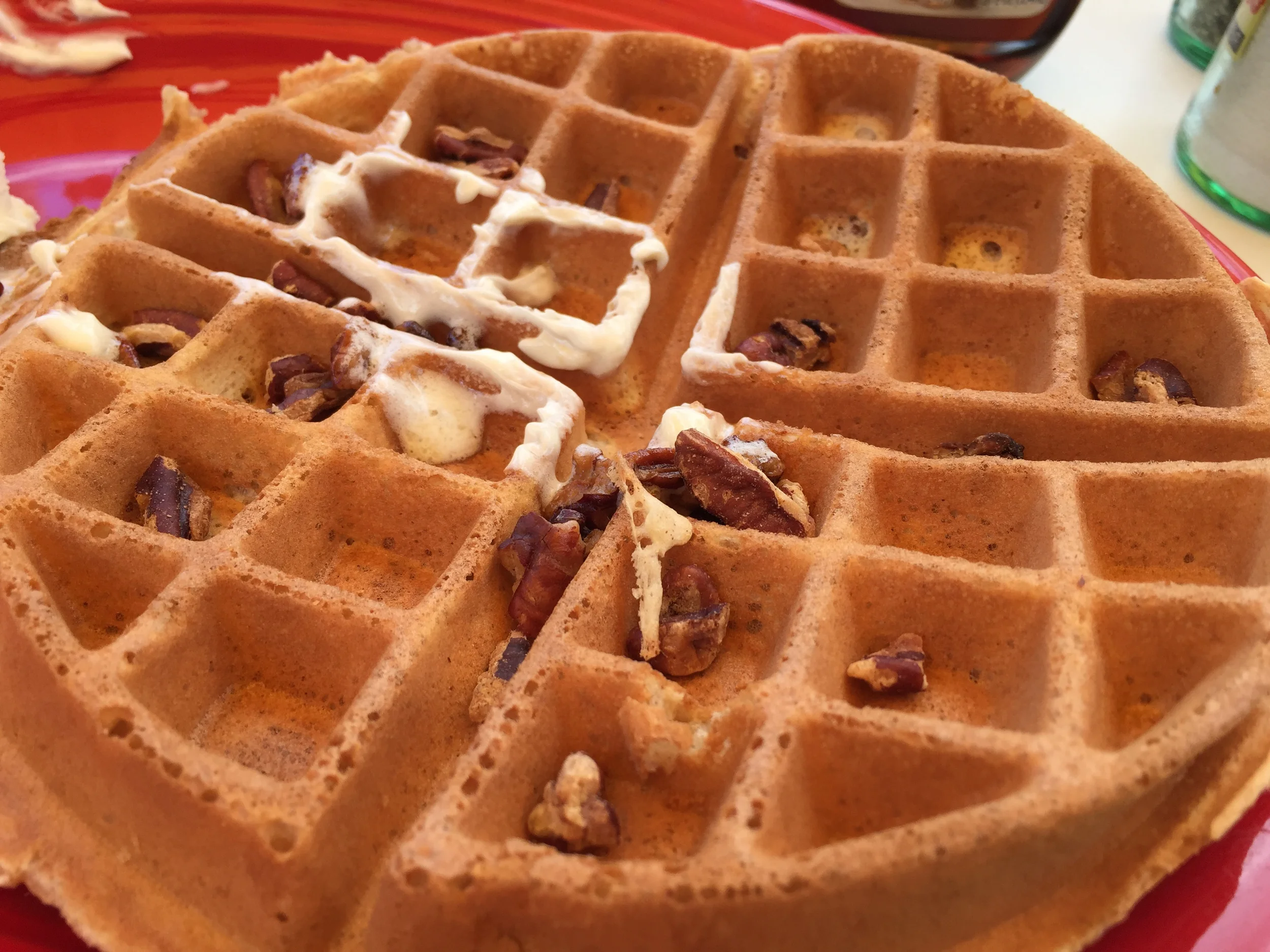 Had me some really good Pecan Waffles! Highly recommended by Jason and Karen B. and they were right, it was really good! I'm glad I got the ala carte else I would have eaten two waffles! It was a great day to visit too as they had a big ol backyard space! My clerk was kind of rude, but that's ok, it didn't ruin my waffles.