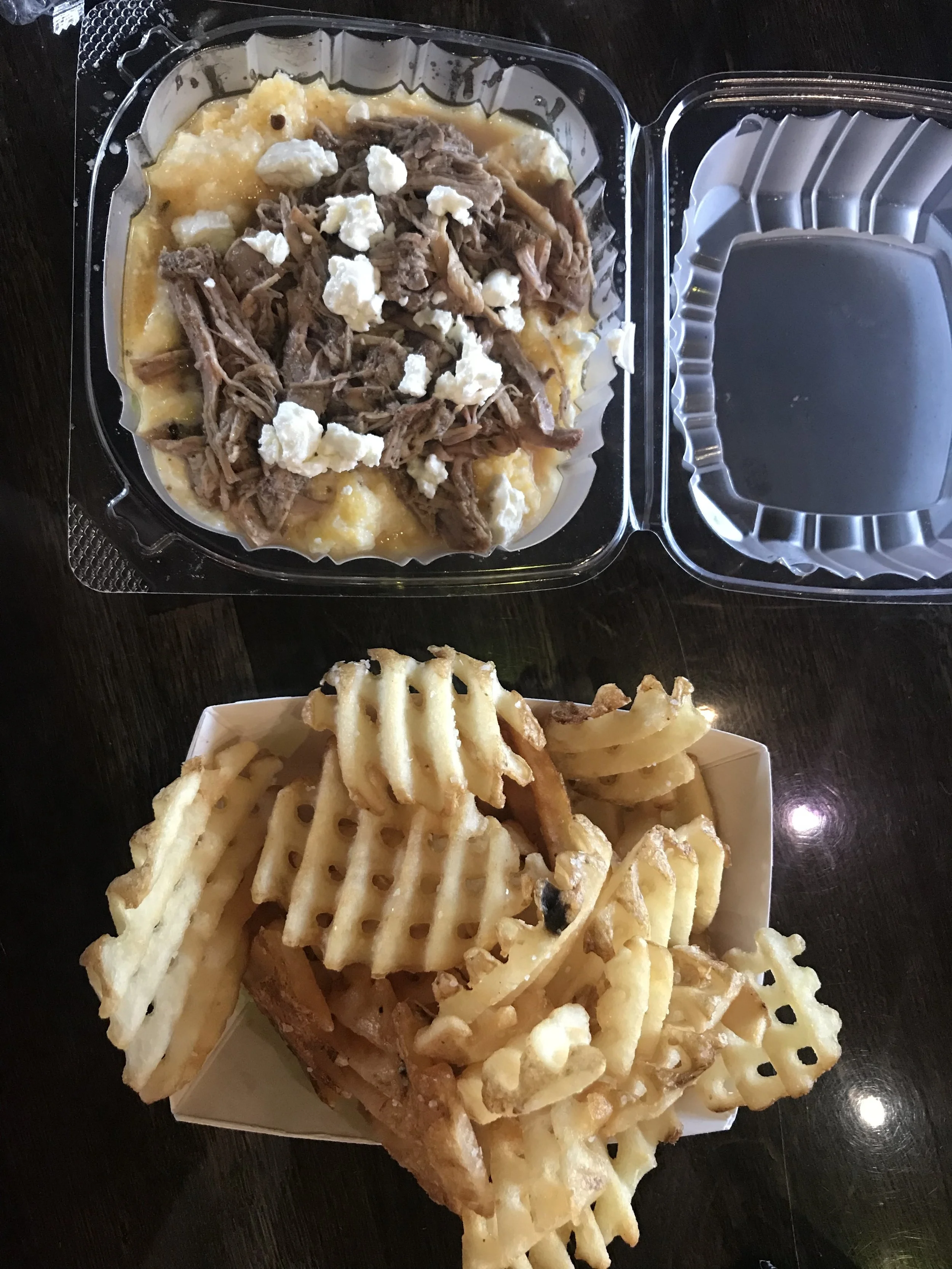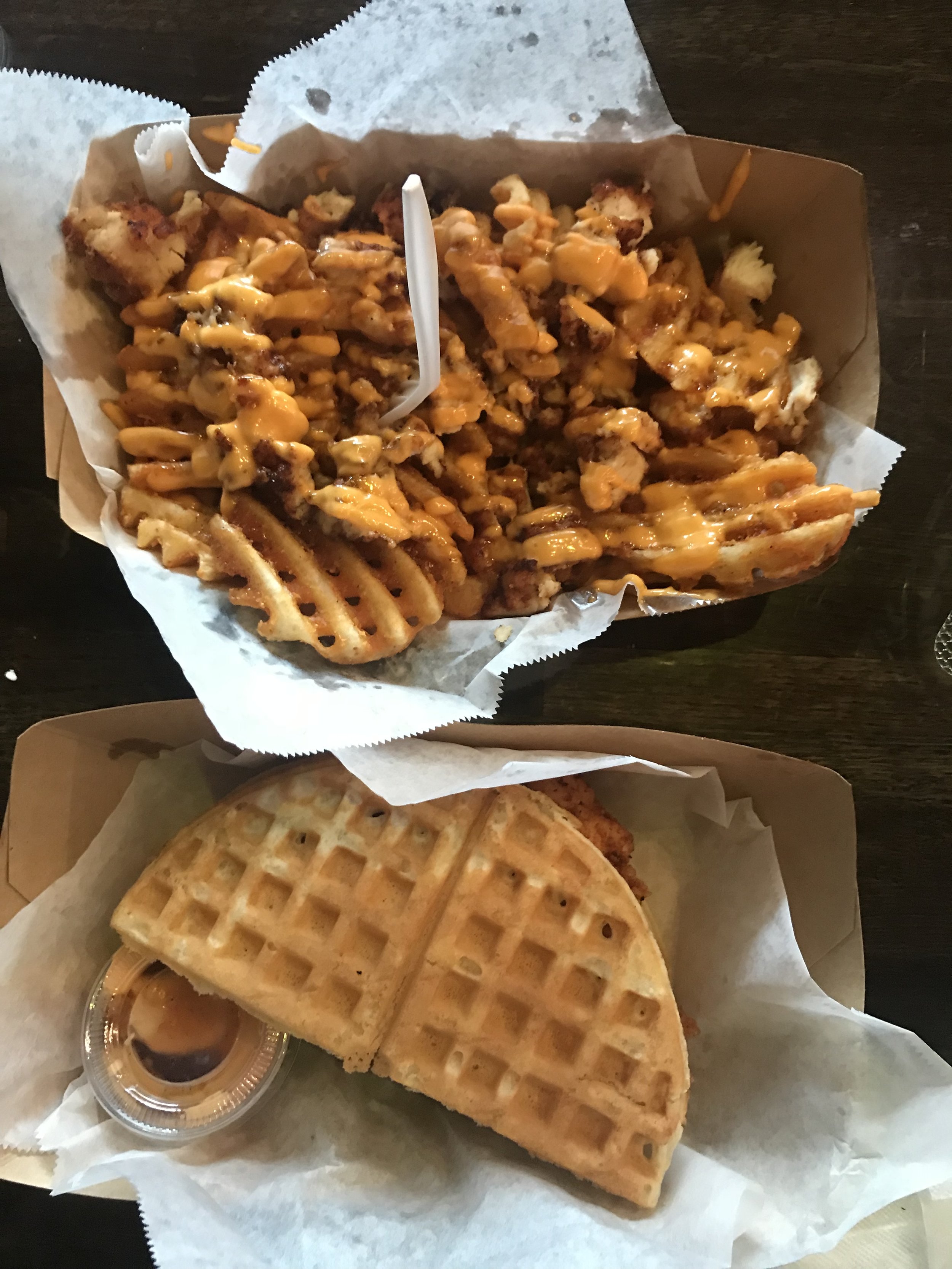 The atmosphere was great. I thought it was odd they didn’t serve food, but they have food trucks outside. Today they had the Waffle Bus and some other truck I can’t remember what the name is. Would have been nice if they had other options, but better than nothing. The space got crowded, Astros World Series games was on, great crowd, super fun atmosphere!