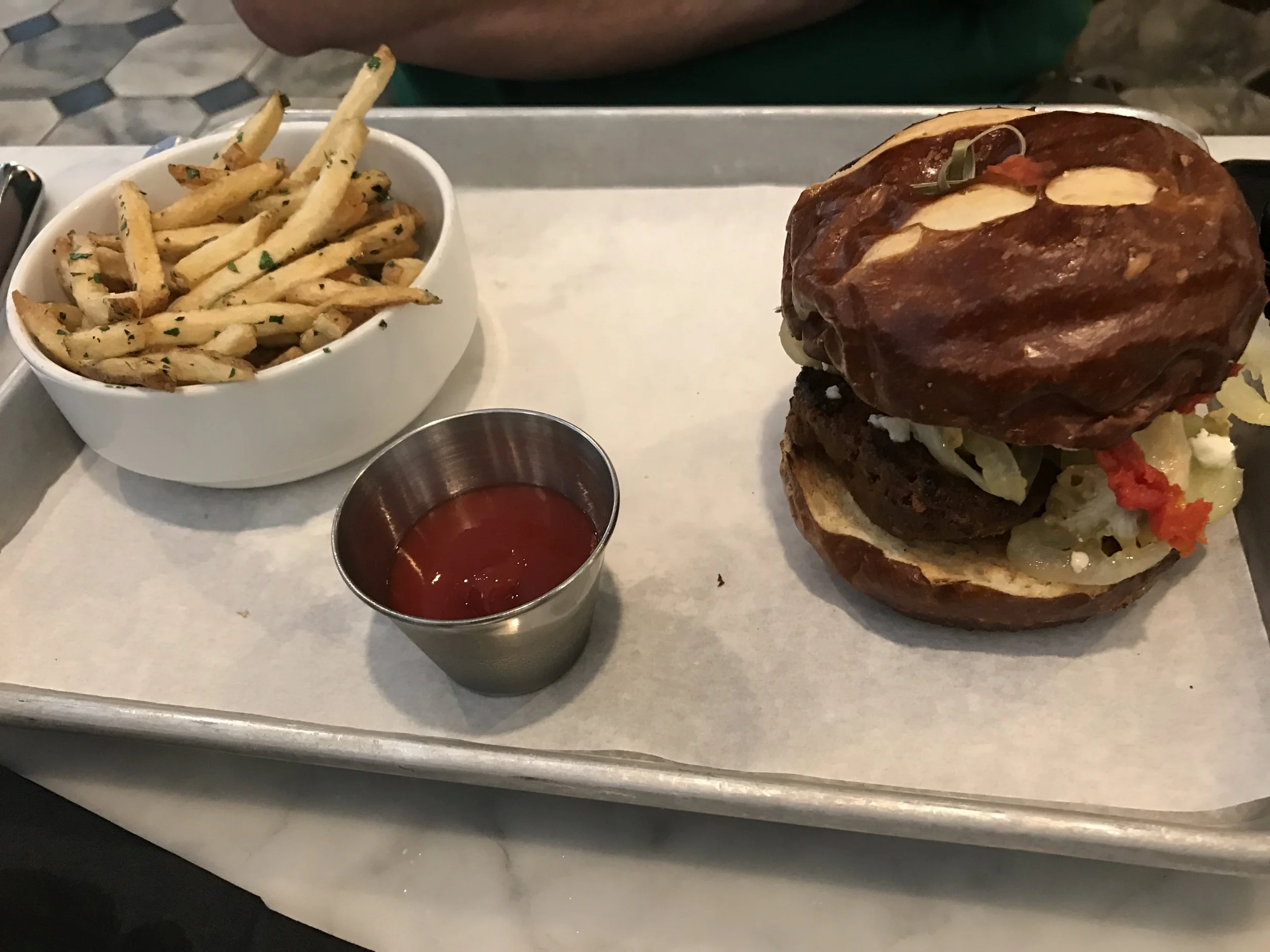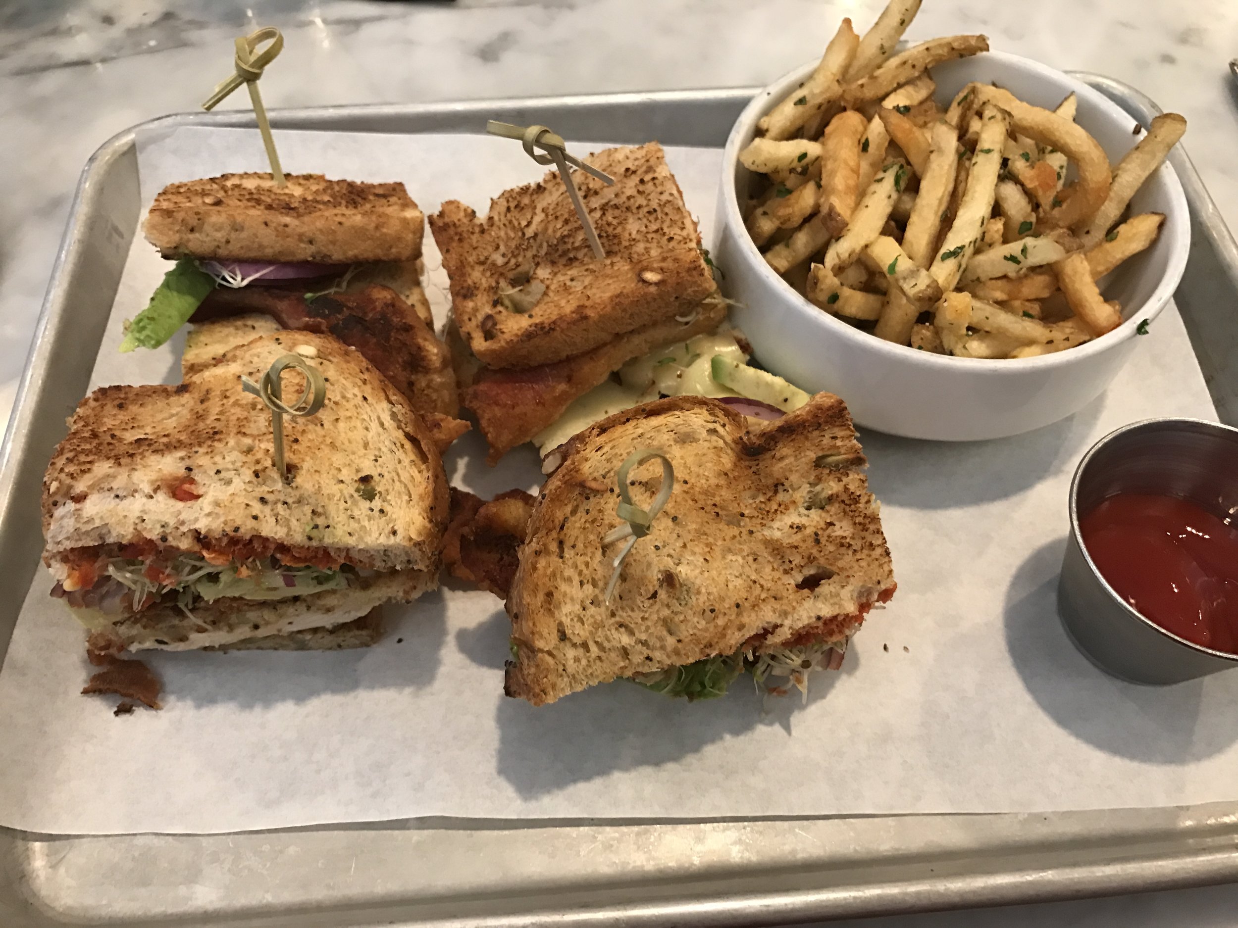 What's this, I have never seen this place before, well today I'm visiting for lunch! I actually liked the atmosphere, it has a bit of an uppity vibe, but I don't mind that. I'm kind of excited to try the food and when my lunch partner arrives we decide to order 2 apps the seafood seafood campechana, $12 and the Brussels sprouts, $9. My Brussels sprouts was good, I was told the seafood campechana was good but that it did taste seafoody so I stayed away. For lunch I got the Chef's Club, $13, which I thought was ok. Oscar got the Texas Beef Burger, $14, which he said the texture was weird like it was a vegetarian burger or something. He didn't like it so much. Then we finished off with the Key Lime Pie which was awesome, but the crust was just way too hard, almost inedible. Overall, I liked my experience, probably would go back if in the area. Also, I heard the same owners own Adair Kitchen and Skeeters, along with a couple other places I had never heard of.