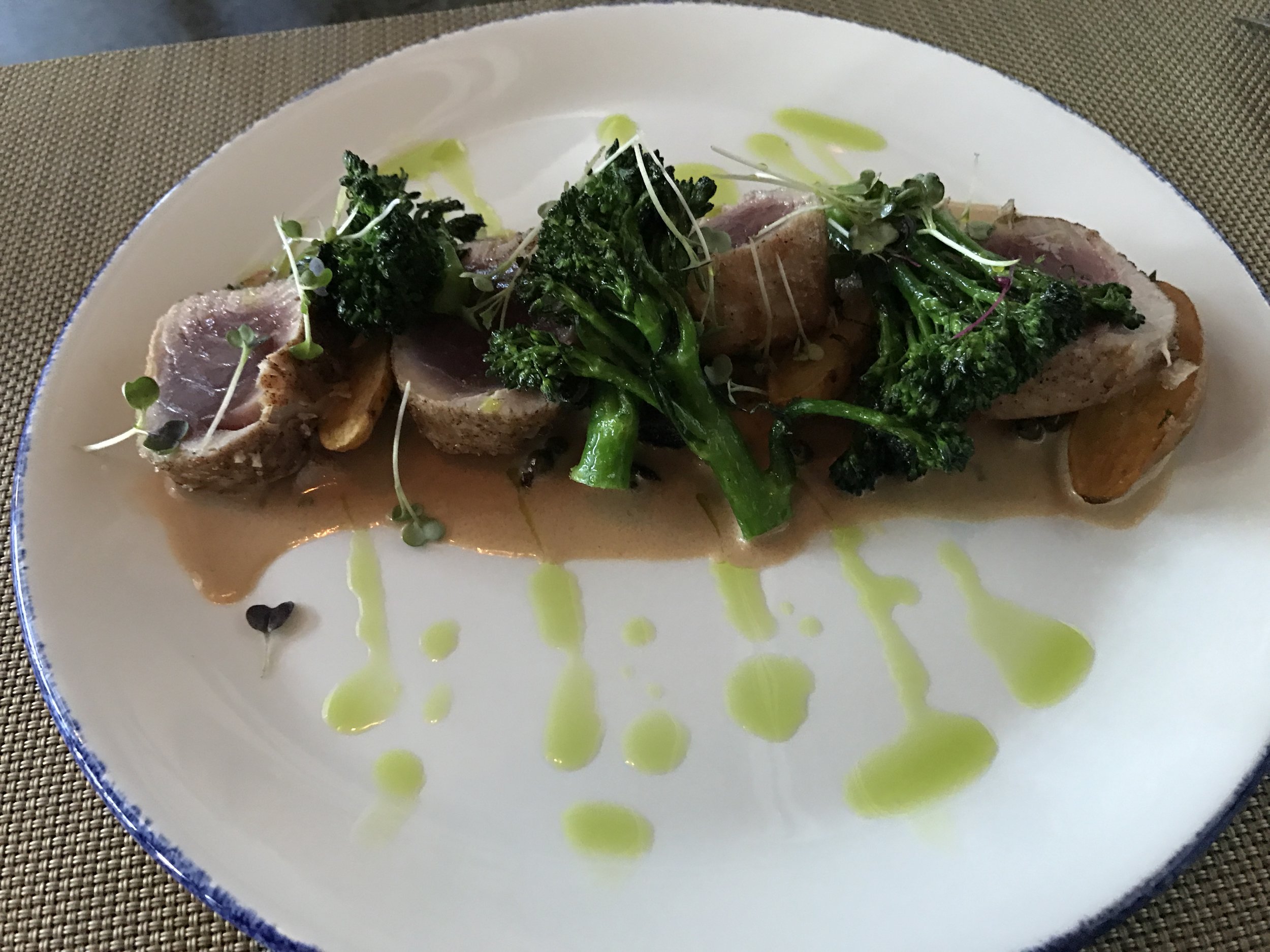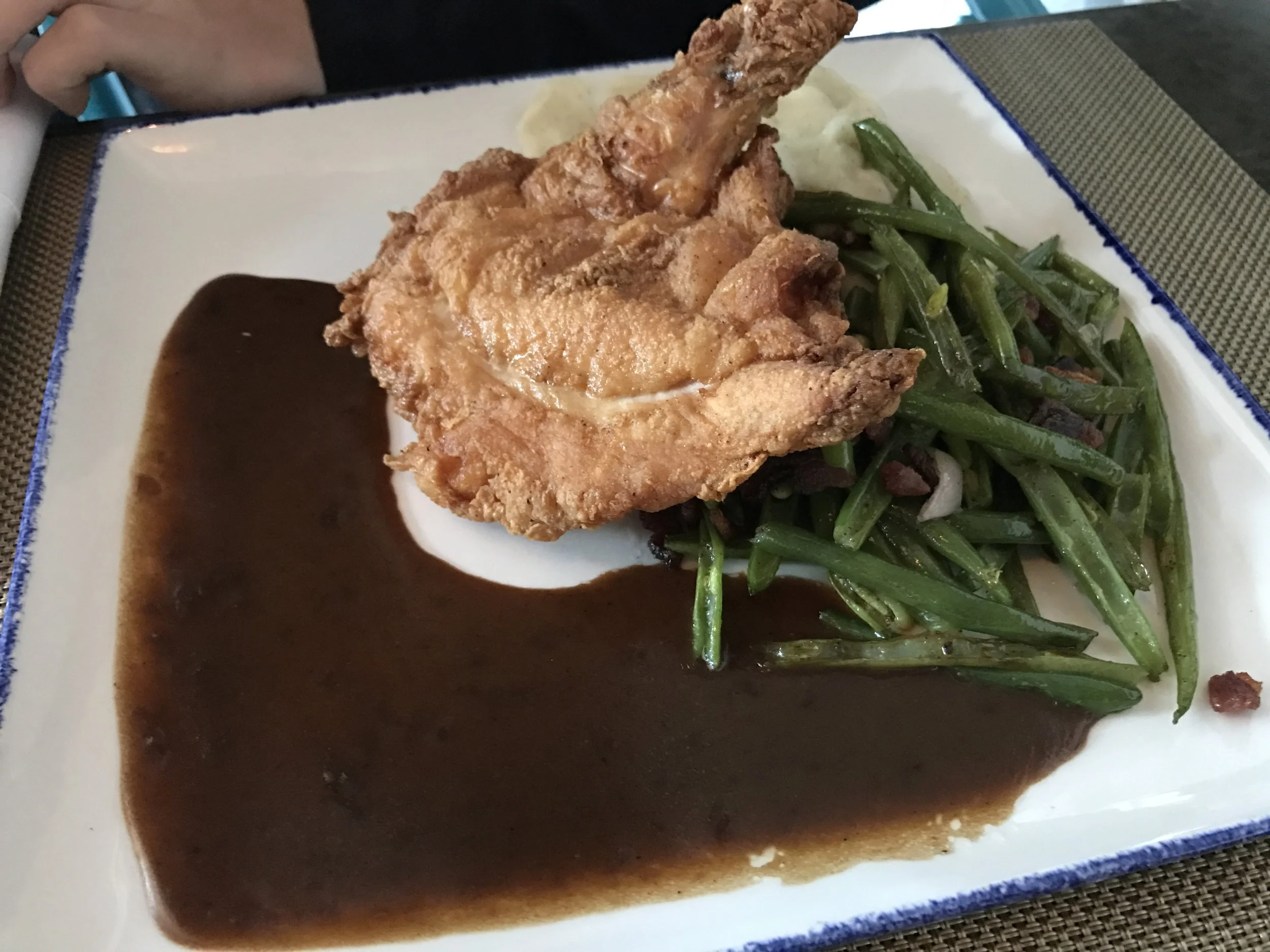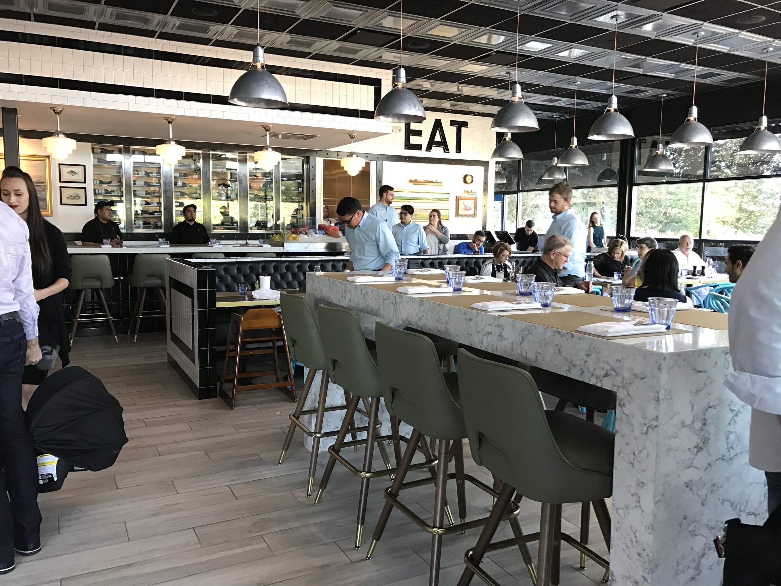 It's new, 3 weeks new, in the old Bradley's Fine Diner spot. Nice and bright, lots of natural sunlight. On walking in decor does look similar to some of their other restaurants, Liberty Kitchen group, or members/former members. We ordered a dozen of Atlantic oysters, fresh and delish, but I wished the horseradish was stronger. I was glad they brought out crackers too! I told our server I was a lightweight and like girlie drinks, he recommended the Celtic Kavanagh, which I got. Huge isn't it?! Matt had to help me finish it, I was starting to turn beet red! On food, I ordered the Ahi Tuna Steak which was real nice, Matt got the Lamb tasty and the side that came with it was real substantive, I liked that a lot! And Ethan got the Fried Chicken, which had a different flavor to it and overall tasted great! We all got our own dessert too, which is very unlike us! If we liked the restaurant if we get dessert, but we each actually got our own! I got the Key Lime, which was mm mm mm. Matt got the Creme Brûlée Chocolate Cheesecake, and Ethan got the Bread Pudding. We all really enjoyed the food and when we were leaving the 16 year old said, "that place was really good", which isn't saying much since he's 16, but us old folks liked it too! Great dining experience! Side note, I liked how Lee came over and chatted with us and made sure he said bye when we were leaving, that was nice. Love the beard!