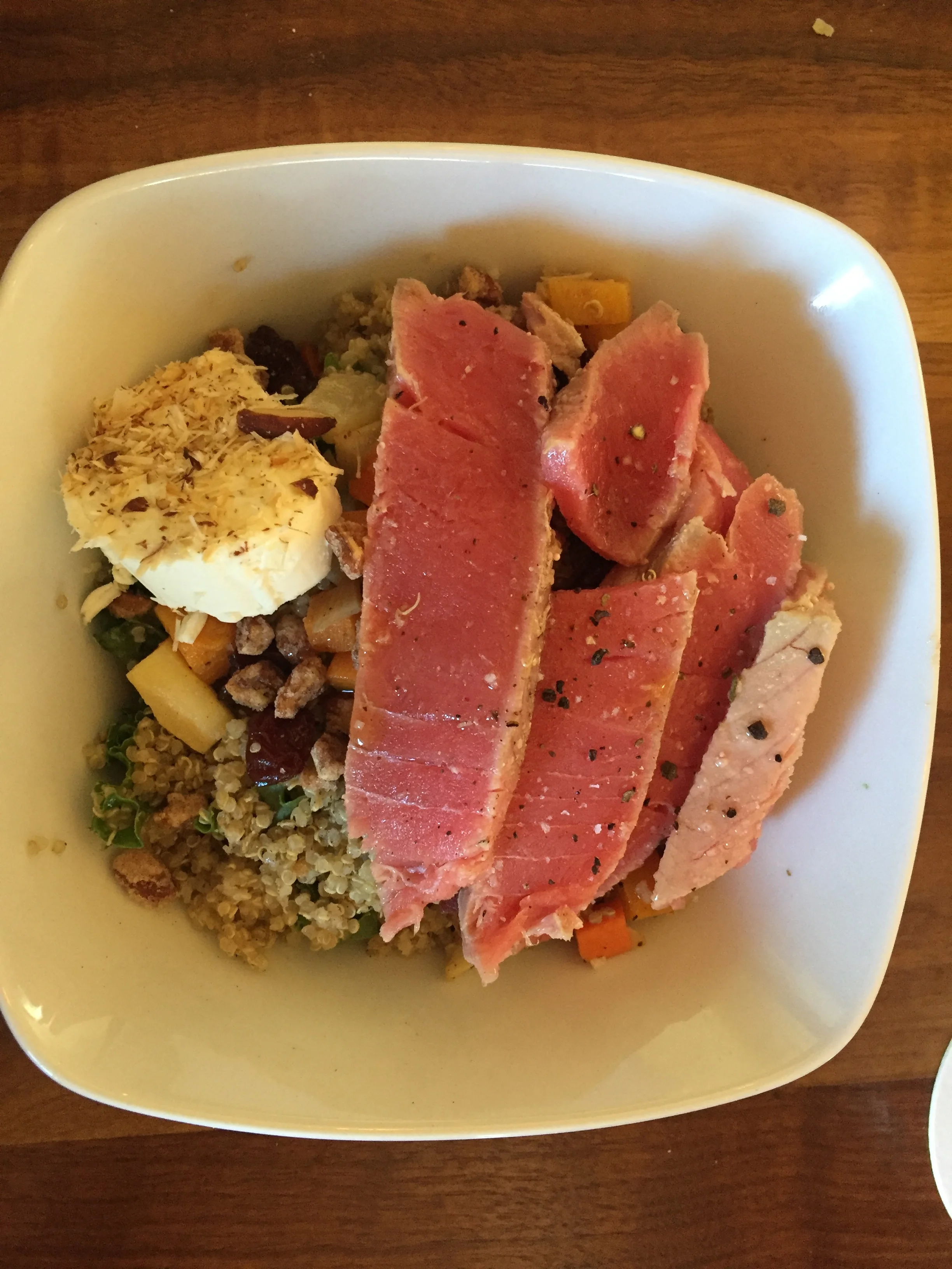 Had a birthday lunch here, got the seared quinoa salad and the tuna was a tad fishy, I couldn't finish it. But, they were nice enough to bring out a little birthday treat! I still like this place, great spot for a day lunch or coffee!
