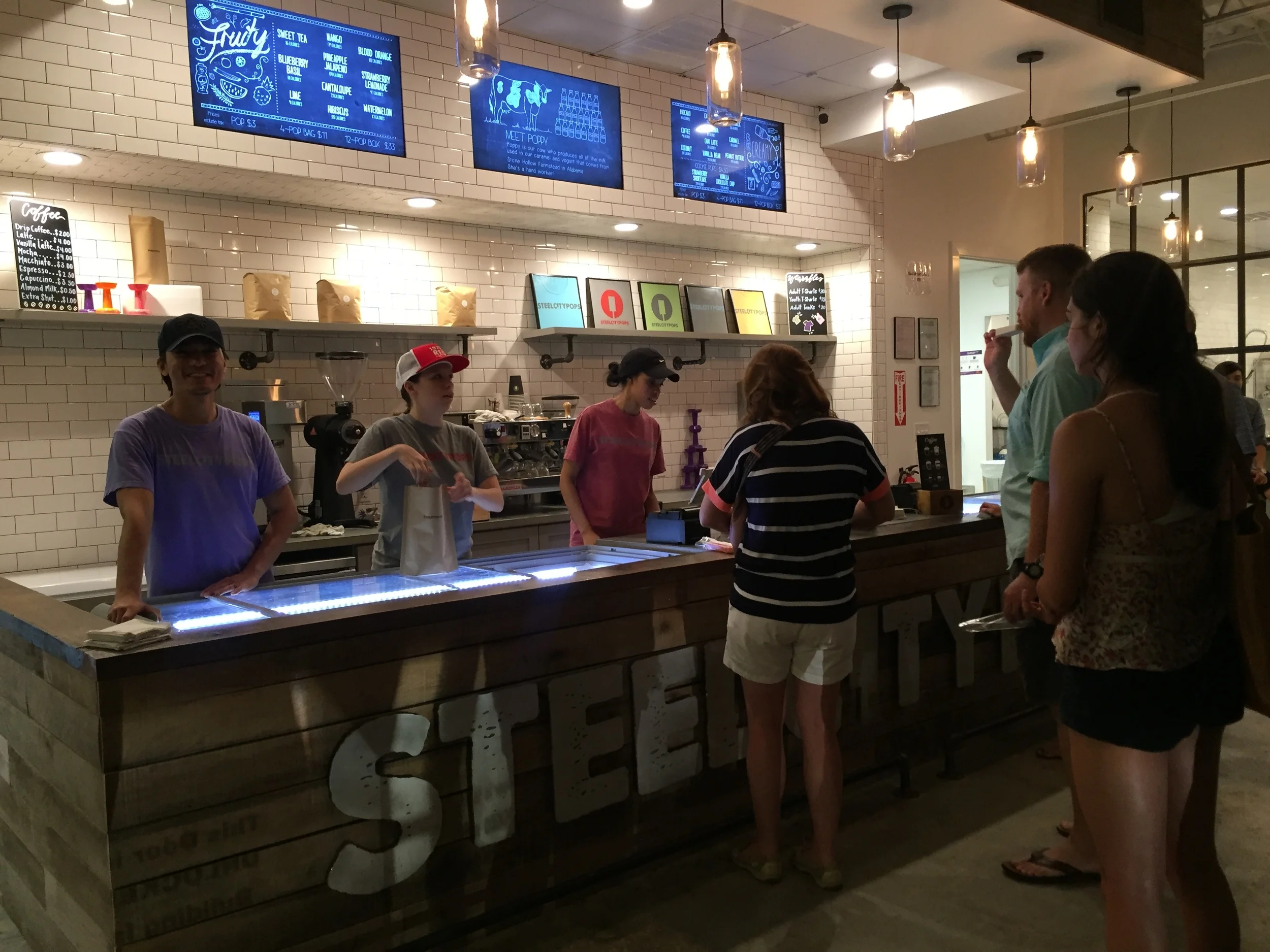 With all the hub bub, I had to try! I visited twice since my first visit, once with my girlfriend Jennifer and the second time with the husband and kiddo. The pops are $3 and so far I have tried the Mango, Coconut, Avocado and Strawberry Lemonade. All pretty good, the Coconut is the best of the creamy pops, the Strawberry Lemonade for the fruity pops. Fun place!