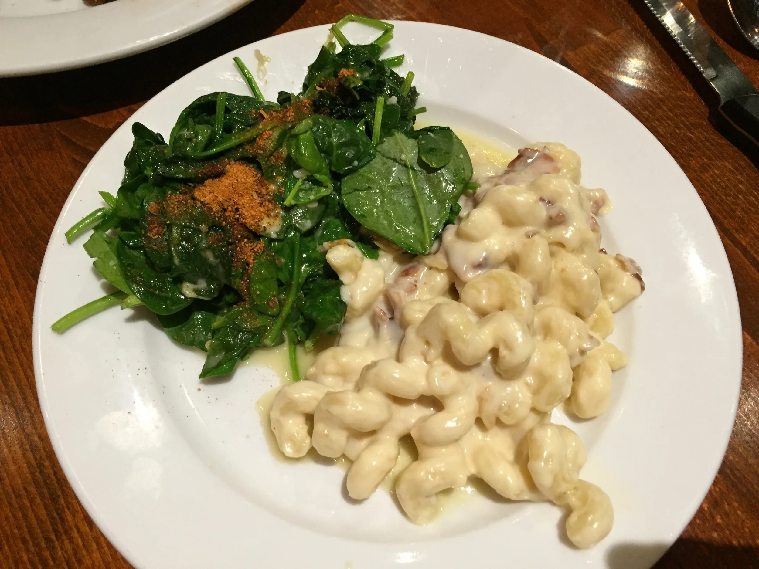 Wow, I was not impressed with the physical restaurant, but the food was quite the opposite! I mean it's sautéed spinach, how good could it be? It was real tasty, and flavorful. Mac and cheese was pretty great too. The porterhouse was pretty good, and that coconut cream pie! Not as delicious as Holley's but it was a close second! Definitely impressed by the food!